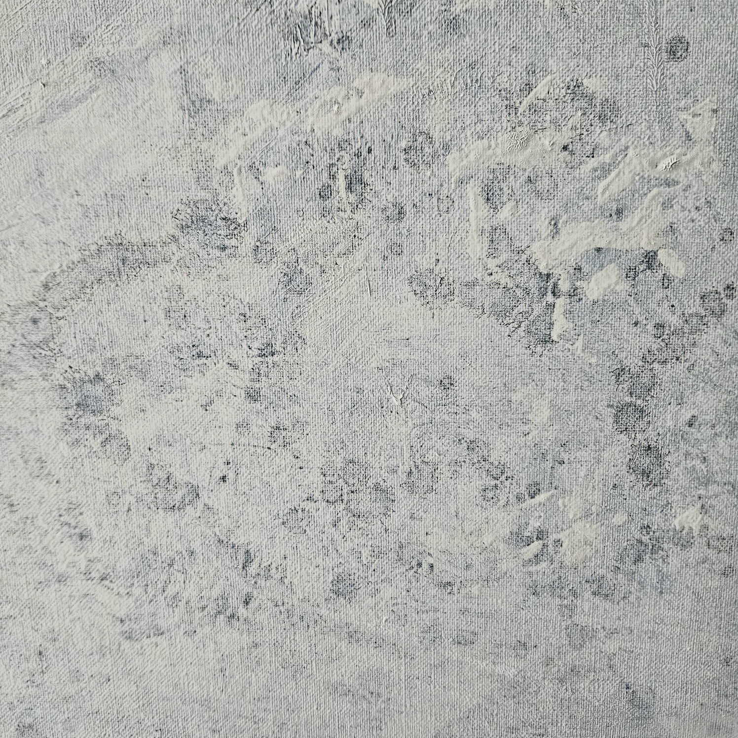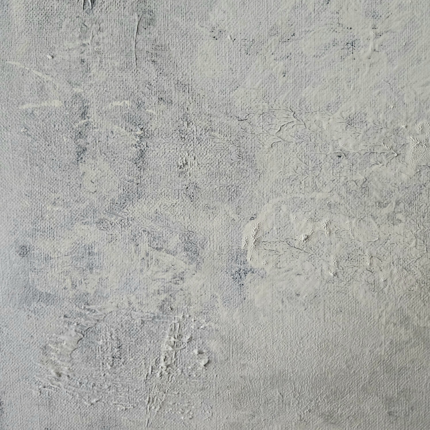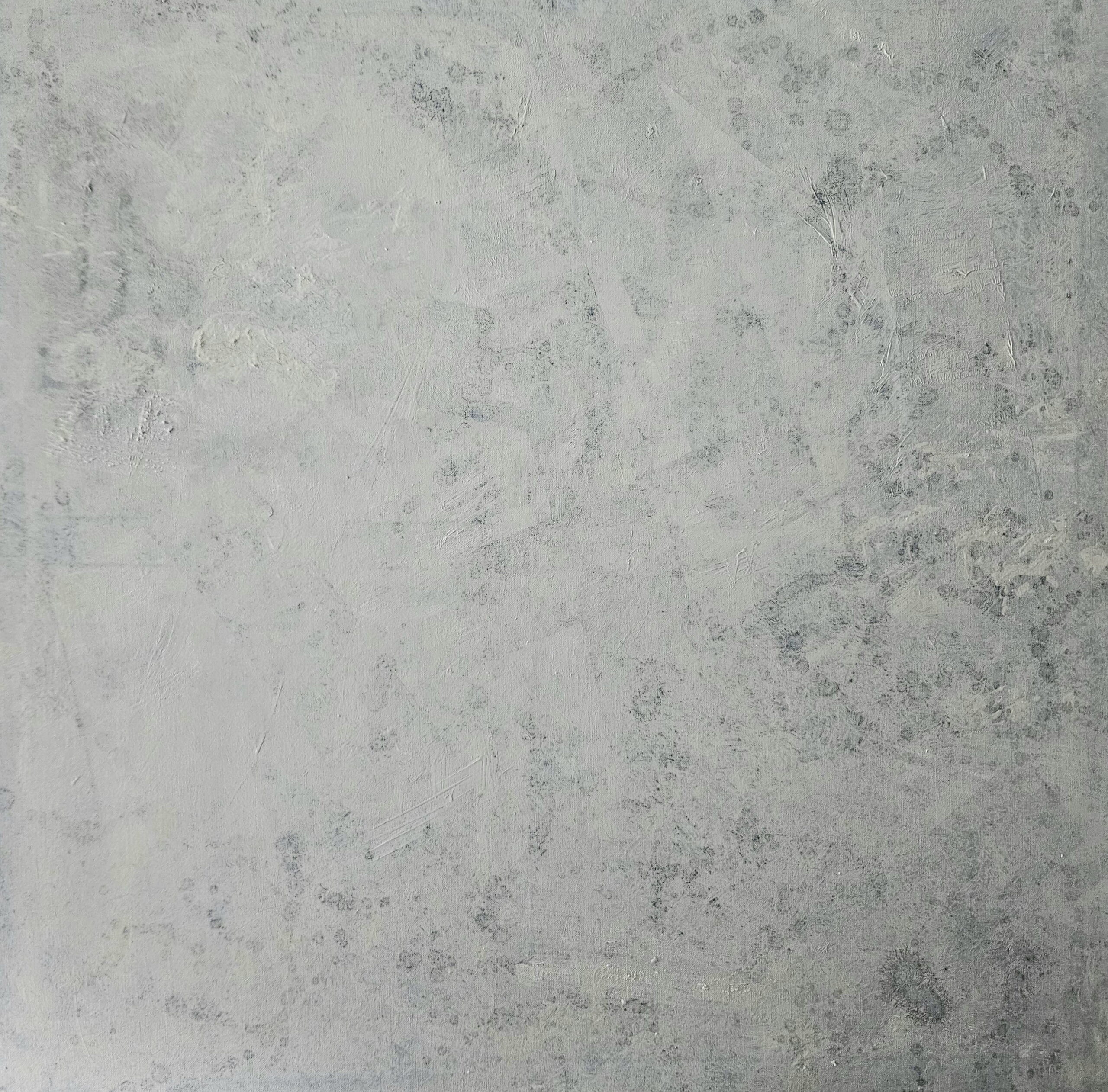 Seria „Destrukcja materii” to obrazy strukturalne oparte na kolorystycznej kompozycji. W tym przypadku kolorystyka to paleta chłodnych bieli przetarte szarością. Tematyka przedstawia próbę uchwycenia przekształceń materii wokół nas. Obserwując i analizując otaczający świat, w swoim obrazie odzwierciedlam własną interpretację przemijania materii w czasie i przestrzeni. Inspiracją był świat pod mikroskopem.